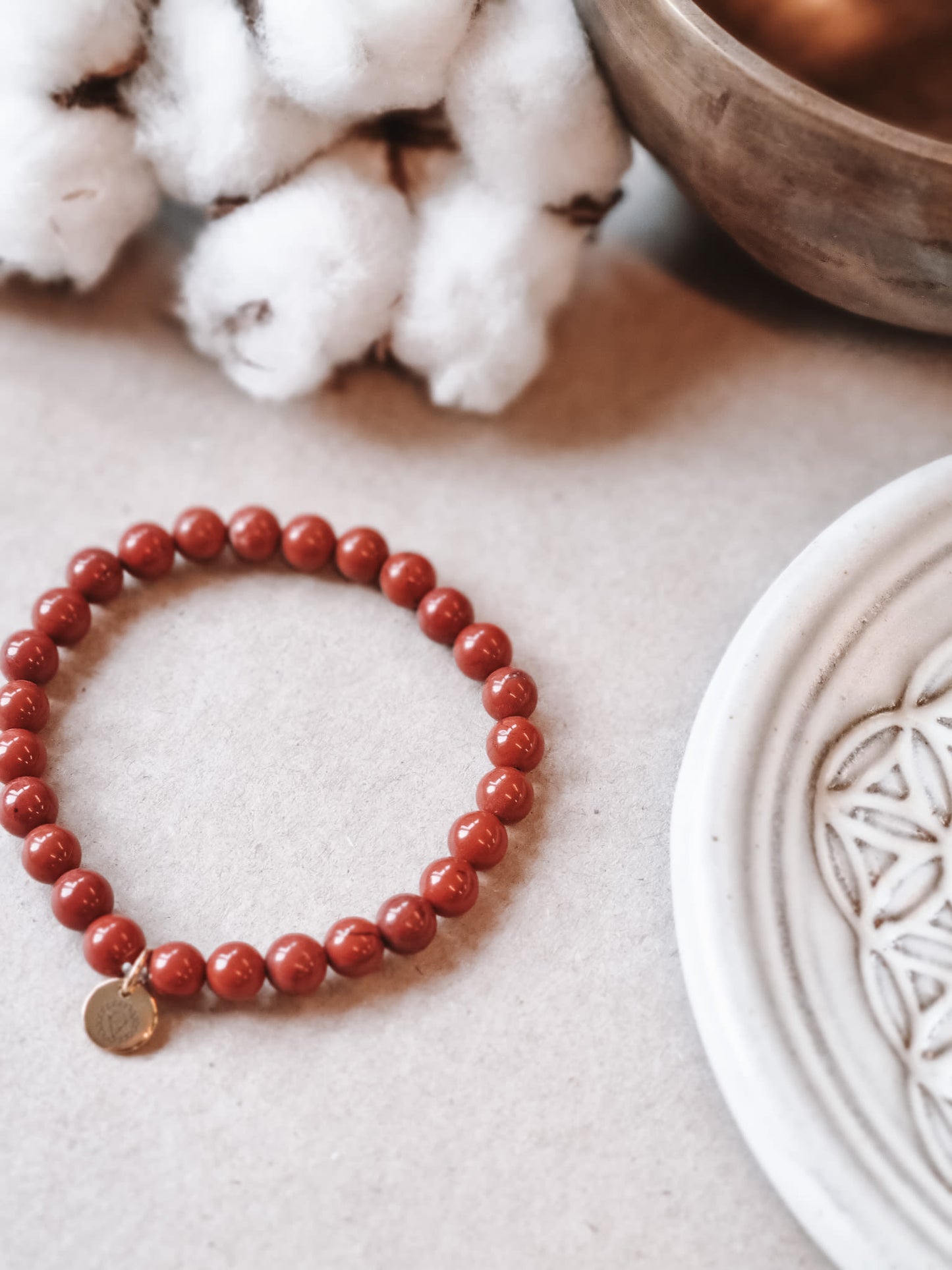 Bamboo jasper is a fantastic stone. Its colors range from deep brown, over golden orange to gentle pink and white. It therefore relates to both upper and lower chakras and can both ground you and lift you far into the universe on your spiritual journeys. Bamboo jasper can also be used for physical manifestation and healing. It will help you visualize and think clearly, as well as find the creativity needed to really manifest the changes you want. Furthermore, the gentle energies are good tools against stress and a busy everyday life. Bamboo jasper is also said to be a very protective stone and should be really good in connection with meditation, healing and spiritual rituals.
